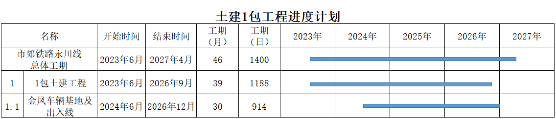 市郊鐵路重慶中心城區(qū)至永川線工程計劃施工總工期60個月。本招標項目計劃于2023年6月30日開工,計劃1188日歷天按合同約定實施和完成本承包工程。