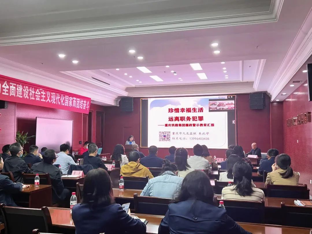 為深入開展學(xué)習(xí)貫徹習(xí)近平新時(shí)代中國(guó)特色社會(huì)主義思想主題教育,貫徹落實(shí)黨的二十大精神和二十屆中央紀(jì)委二次全會(huì)、六屆市紀(jì)委二次全會(huì)部署,持續(xù)推動(dòng)全面從嚴(yán)治黨向縱深發(fā)展,5月11日,市鐵路集團(tuán)舉辦學(xué)習(xí)貫徹習(xí)近平新時(shí)代中國(guó)特色社會(huì)主義思想主題教育第二期讀書班黨風(fēng)廉政建設(shè)警示教育講座暨2023年第二季度黨風(fēng)廉政建設(shè)重點(diǎn)人員預(yù)防教育會(huì),邀請(qǐng)重慶市九龍監(jiān)獄黨委副書記、政委朱此學(xué)作了題為《珍惜幸福生活 遠(yuǎn)離職務(wù)犯罪》的專題講座。集團(tuán)黨委領(lǐng)導(dǎo)班子、中層管理人員,所屬單位領(lǐng)導(dǎo)班子成員、中層管理人員,支部書記及黨員代表,集團(tuán)本部和所屬各單位黨風(fēng)廉政建設(shè)重點(diǎn)人員以及參加集團(tuán)紀(jì)檢干部隊(duì)伍教育整頓的全體紀(jì)檢人員、新進(jìn)黨員等共計(jì)300余人參加會(huì)議。會(huì)議由集團(tuán)黨委委員、監(jiān)事會(huì)主席陳靜主持。