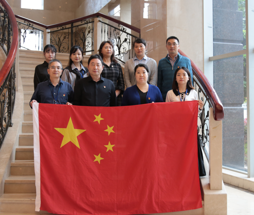 學(xué)習(xí)后,全體黨員與國(guó)旗合影,以錚錚誓言表達(dá)對(duì)黨和祖國(guó)的熱愛(ài)與祝福。