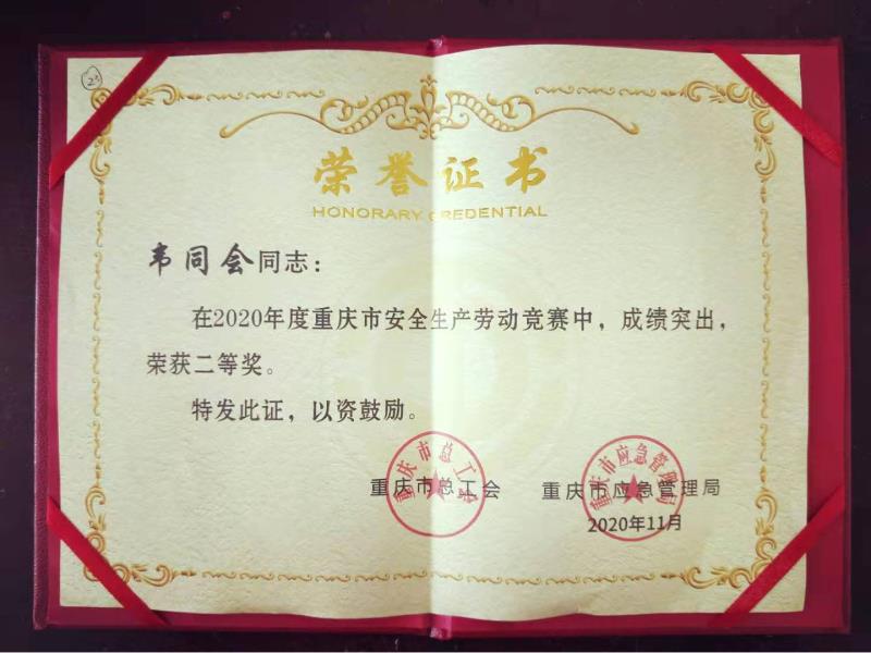 11月11日,由重慶市總工會(huì)、市應(yīng)急管理局聯(lián)合主辦的“重慶市安全生產(chǎn)勞動(dòng)競(jìng)賽”總結(jié)大會(huì)圓滿落幕,市鐵路集團(tuán)韋同會(huì)榮獲“2020年度重慶市安全生產(chǎn)勞動(dòng)競(jìng)賽”先進(jìn)個(gè)人二等獎(jiǎng)。
