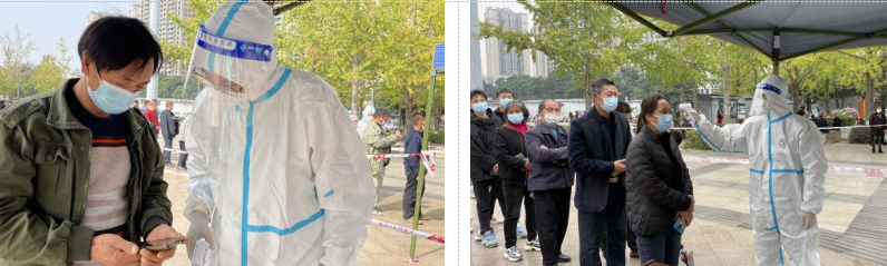 集團本部,運營管理部吳君作為志愿者,主動下沉到一線參與圣泉街道圣泉社區(qū)疫情防控相關(guān)工作,協(xié)助社區(qū)做好核酸檢測事宜。
