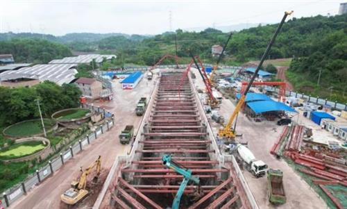 根據(jù)設計資料顯示,15號線二期中梁山隧道正線下穿5組既有線,其中安全風險最高為下穿渭井下行線,拱頂埋深距離既有線鋼軌頂僅8.61米,周邊環(huán)境復雜,施工風險極高。為保障中梁山隧道施工期間既有線安全運營,根據(jù)鐵路監(jiān)管部門要求,設計采用D16型施工便梁對下穿范圍內線路進行加固。該加固施工于2023年12月完成樁基礎施工,2024年4月開始籌備架梁工作,至5月16日凌晨完成全部架設任務,安全恢復列車通行。