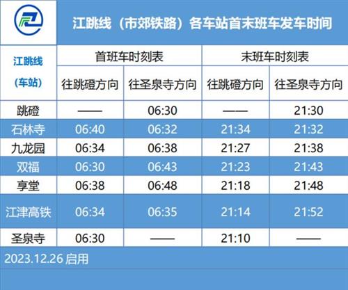 根據(jù)客流變化特征,江跳線將從2023年12月26日起優(yōu)化列車運(yùn)行圖,延長(zhǎng)運(yùn)營(yíng)服務(wù)時(shí)間。