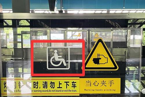 它的真實身份是“無障礙標識”,代表對應的車廂內(nèi)設有輪椅固定器,乘坐輪椅的乘客在這兩道門上車是最方便的!